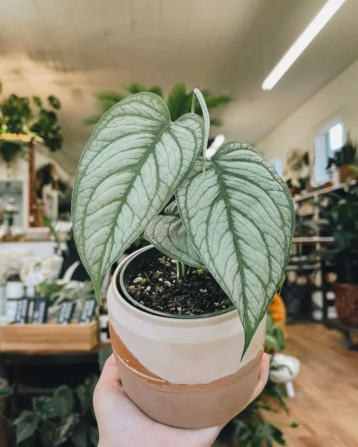 Monstera siltepecana, also known as the silver leaf Monstera, is named for its striking silver-green foliage. The leaves are elongated and have distinct silver veining, adding a unique decorative element to indoor spaces. This species is often grown as a houseplant or in tropical gardens.