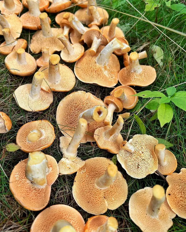 These types of yard mushrooms are fantastic for creating meat substitutes in vegetarian or vegan recipes. Known for their robust meaty stems, King Trumpets, or king oyster mushrooms, have sturdy white stems and stout brown caps.