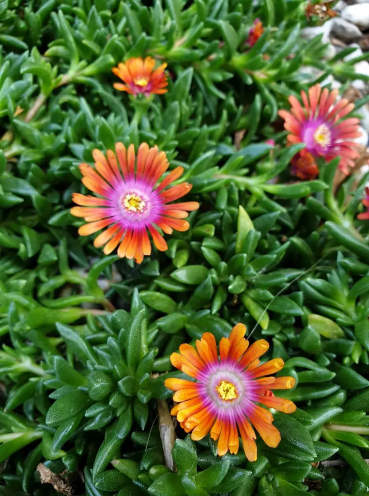 The ice plant spreads easily to form a dense, mat-like groundcover adorned with the showy blooms in warm months. Its vibrant flower displays and tolerance of full sun and cold temperatures make it an excellent choice for low-maintenance landscaping.
