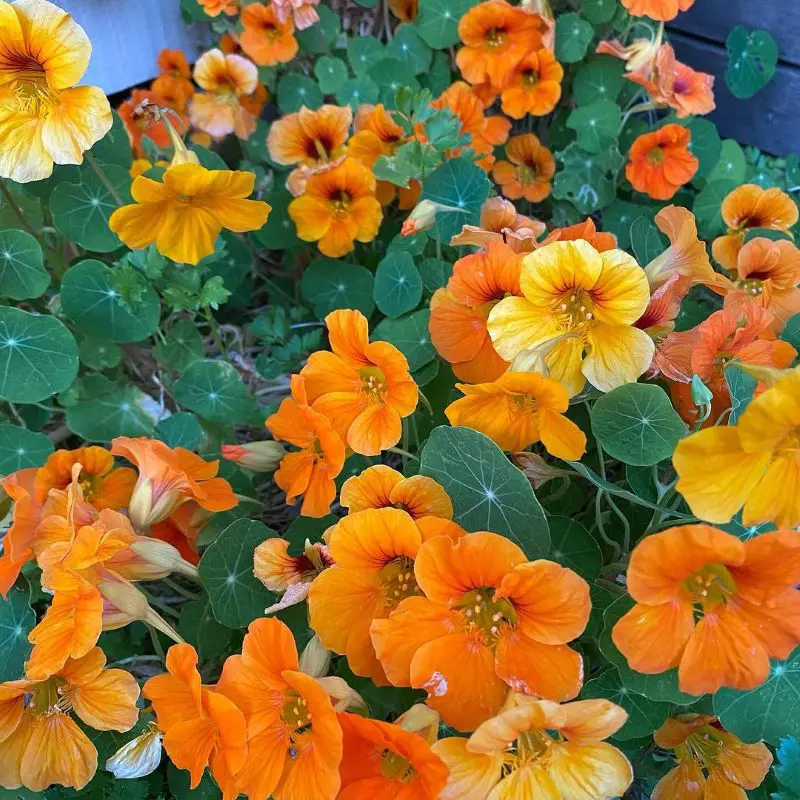 Additionally, nasturtiums have a tendency to self-seed easily. This means they can effortlessly spread throughout your garden, providing continuous bursts of color and ongoing pest control without much effort on your part.