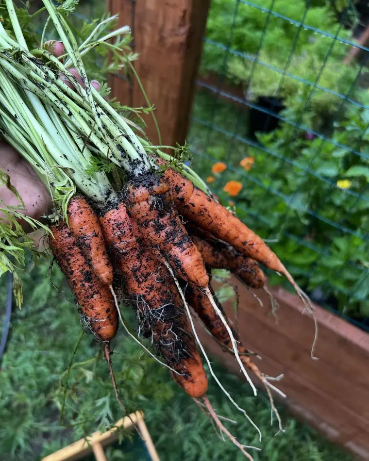 Carrots: Carrots are the best and easiest crops to grow. Sow the seeds in moist soil and water them properly. Watering carrots regularly is helpful, and you can use balanced soil as a side dressing as they grow. Your carrots will grow to the right size, usually 60–80 days after planting, to ensure good flavor and texture.