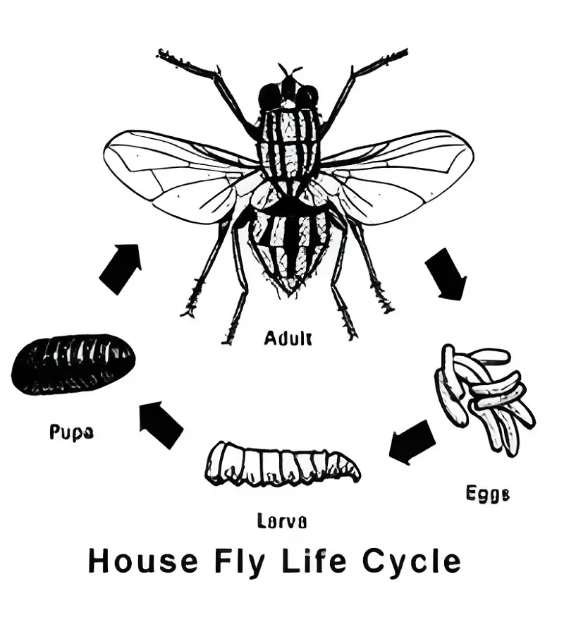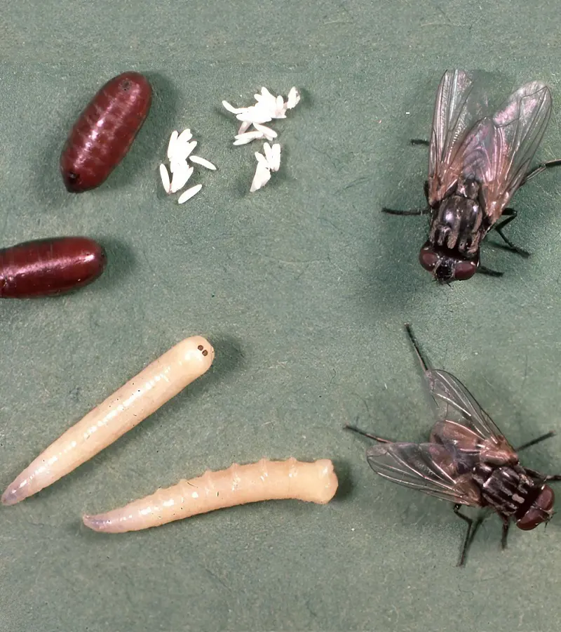 Their larvae, or maggots appear similar to pale worms. The sole purpose of the larvae is to eat and store energy for pupation.