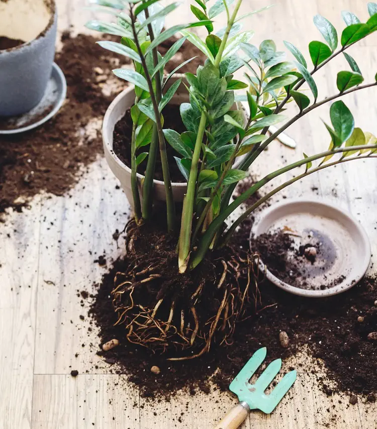 ZZ plants should be repotted when their rhizomes outgrow the current container, pressing against the soil or distorting the pot's shape. Signs of stress, indicating root-bound conditions, are also indicators for repotting.